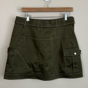 Mango Army Green Pocket Detail Belted Zipper Mini Skirt Size Medium