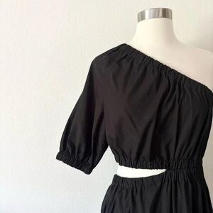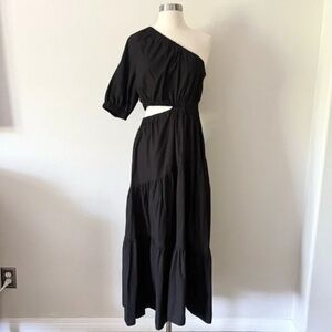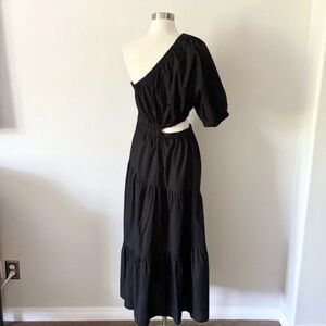 Mango Asymmetric One Shoulder Tiered Maxi Dress Black Medium M