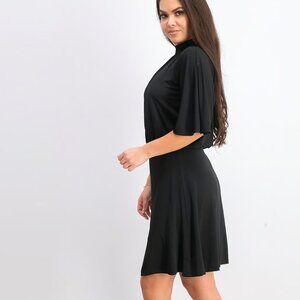 Mango Basics Black Solid Blouson Flutter Sleeve Mini Dress Size XS EUC