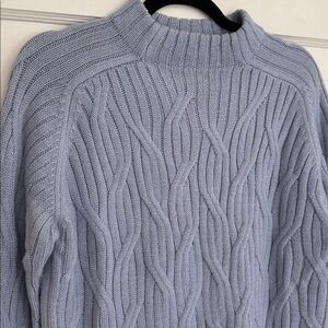 Soft knit sweater in a gentle light blue. Ideal for layering.