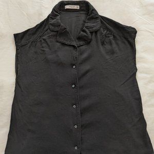 Description: linen top, soft fabric, super comfortable, button down, collared, sleeveless