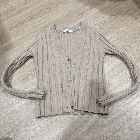 Mango Beige Ribbed Cardigan