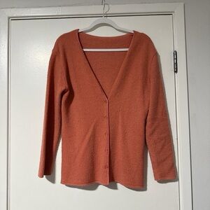 Chic ribbed cardigan with button-up front. Ideal for layering. Soft and comfortable.