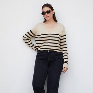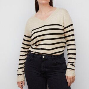 Mango Beige/Black Striped Fine-Knit Sweater/NWT/XXL