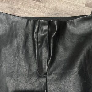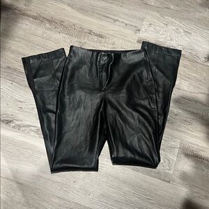 Stylish black faux leather trousers. Ideal for modern outfits.