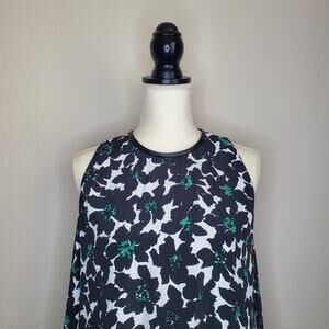 This Mango Black Floral Shift Dress is a timeless addition to your wardrobe! The dress is lined for comfort and finished with vegan leather trim for a chic, modern touch. The beautiful floral pattern adds a pop of color while maintaining an elegant vibe. Perfect for everything from brunches to evening outings!