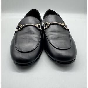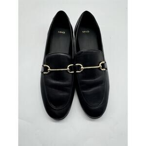 Mango Black Leather Loafers Gold Buckle Details Womens US Size 10 Euro 41