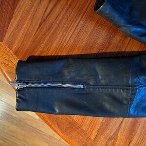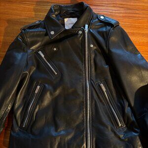 Mango Black Leather Moto Jacket LIKE NEW SHEEP LEATHER size Large