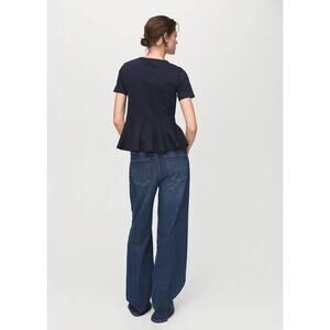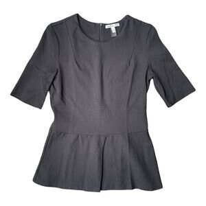 Mango Black Peplum Top Short Sleeve Round Neck Suit Collection - Size Small