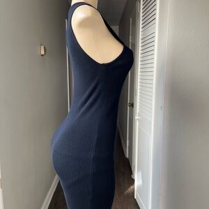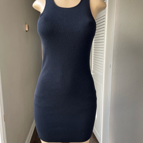 Chic black mini dress with ribbed texture. Perfect for versatile styling.