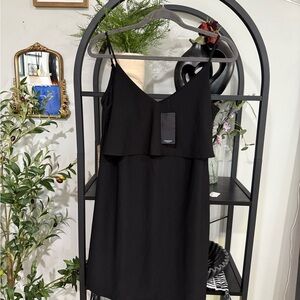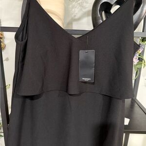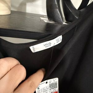This sleek black mini dress from Mango features a chic slip style with delicate spaghetti straps, perfect for a cocktail night out. Its minimalist design and form-fitting silhouette offer a timeless elegance, making it a versatile addition to any wardrobe.