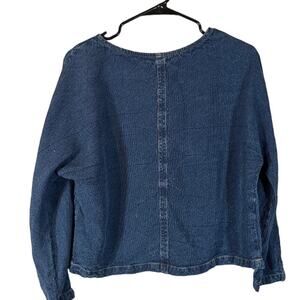 Mango Blue Long Sleeve Crew Neck Casual Denim Shirt Women Sz S