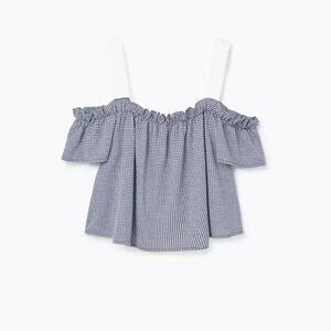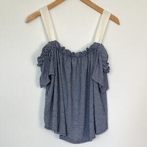 Mango Blue White Gingham Flowy Cami Top Tank Blouse