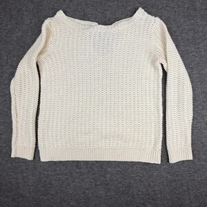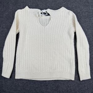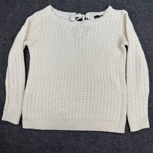 Mango Boat Neck Pullover Knit Sweater Cream Women's XS Bow Tie Back Cozy Neutral