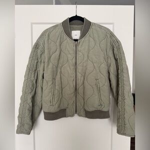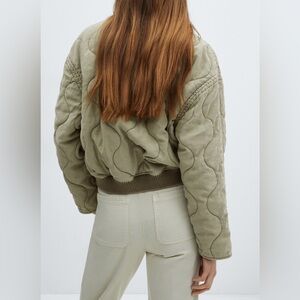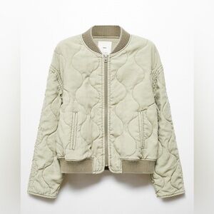 Chic olive bomber jacket by Mango. Features quilted design. Ideal for layering.