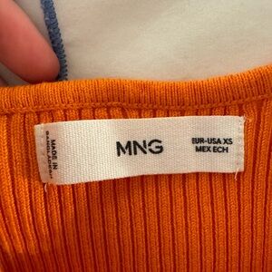 Sleeveless ribbed camisole. Deep V-neckline. Bold orange hue.
