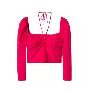 Mango Bright Pink Puff-Sleeved Halter Cropped Blouse Size 4