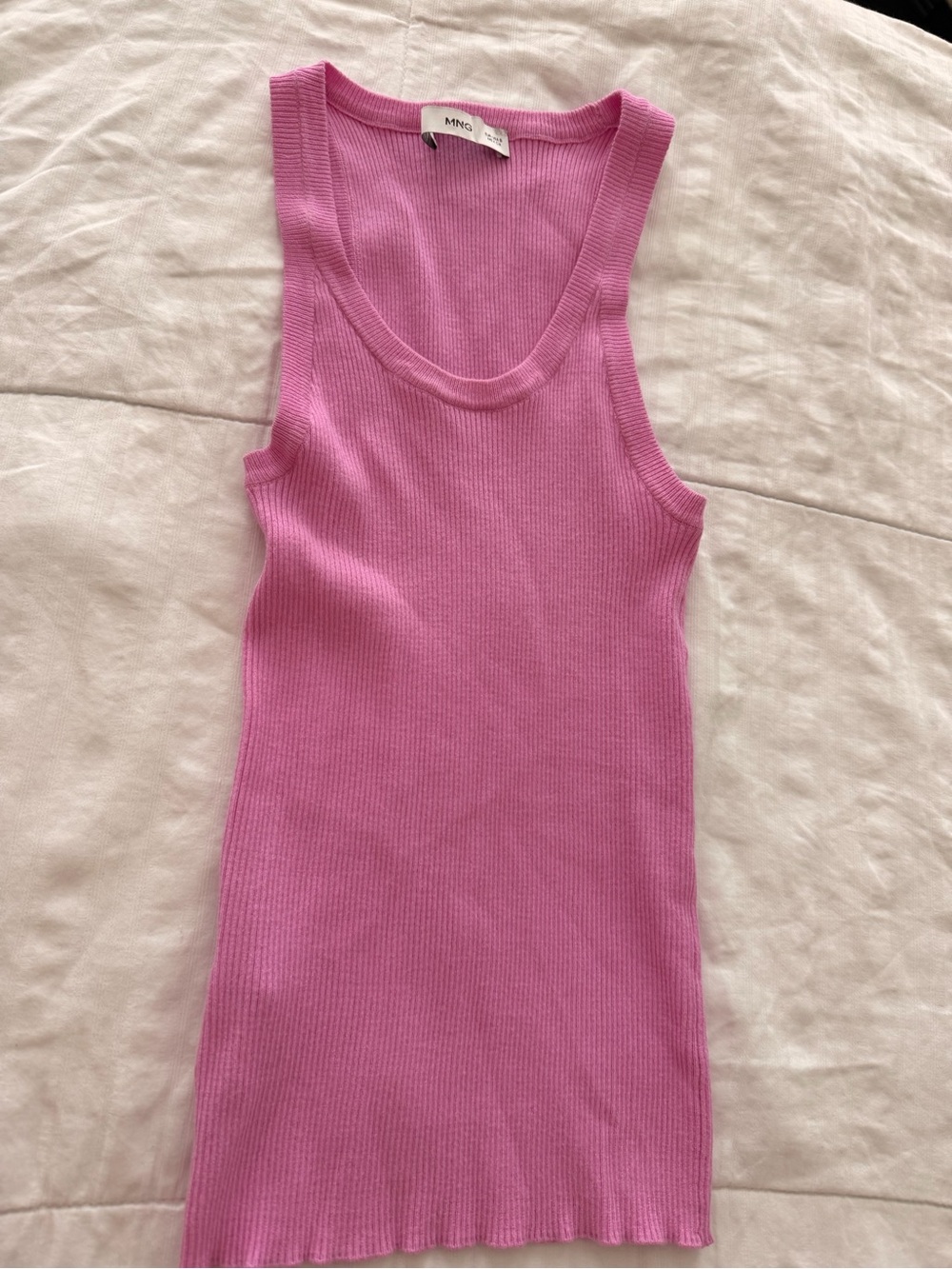 Fitted ribbed tank top from Mango. Scoop neckline and sleeveless design. Stretchy knit for a close, flattering fit. Vibrant pink hue that stands out.