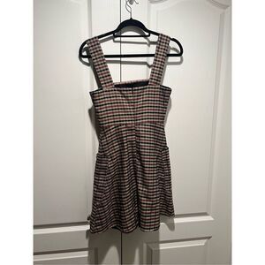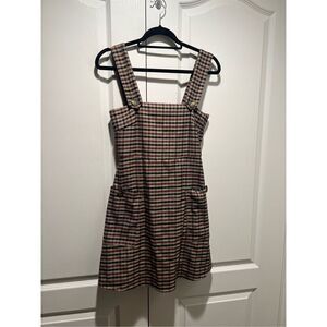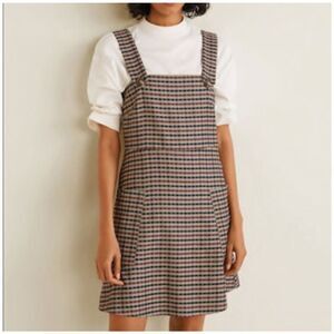 Mango Brown checkered button pinafore Mini dress size XS