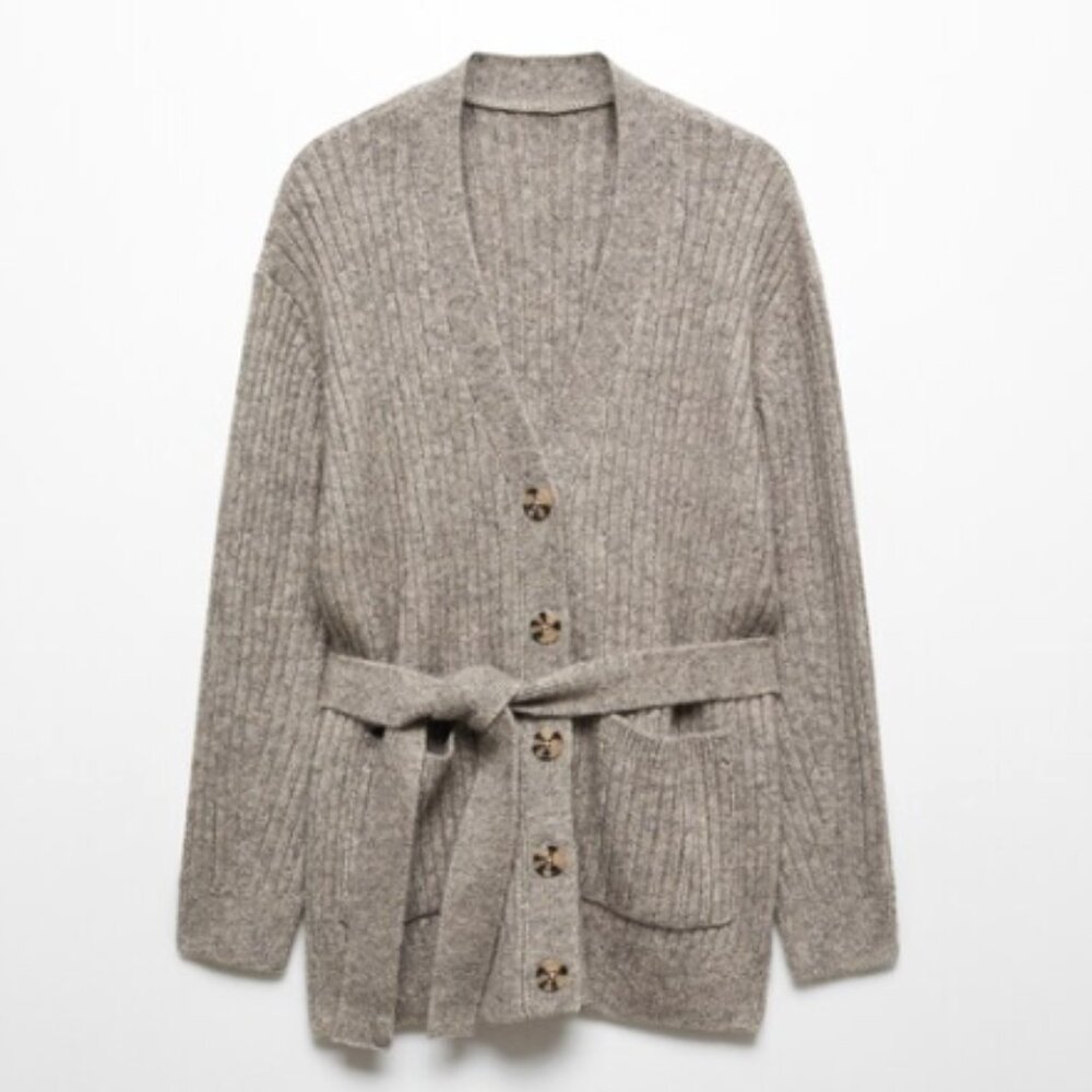 Mango Buttoned Ribbed Cardigan