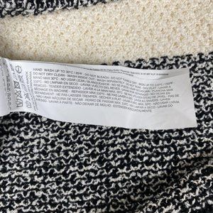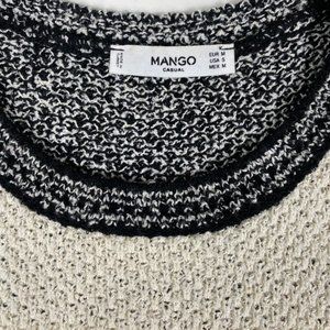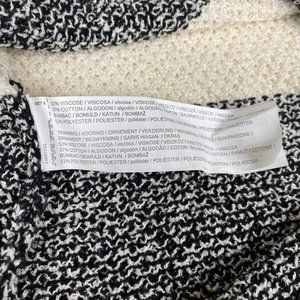 Mango knitted sleeveless top with pom poms surrounding edges of garment. Black and white throughout. Summer, beach vibes. Size small!