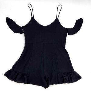 Mango Casual Spaghetti Strap Cold Shoulder Shorts Romper Black Size Medium