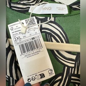 Flowy fabric. Satin. Chain print. Short design. Straight design. Shirt-style collar. Crossed V-neck. Long sleeve. Knot closure.