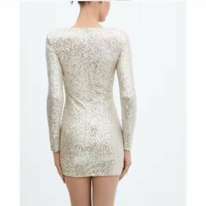 NWT! Gorgeous champagne colored sequin Mango dress. Never worn and in excellent condition. Sometimes the zipper sticks a little (I think because it is an invisible sticker and the sequins can get in the way), but I have tried it a few times to be sure it works ok, which it does. Such a stunning dress with a tailored design, rounded neck, long sleeves, invisible back zip fastening, shoulder pads and inner lining. Party and events collection.