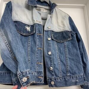 Mango Colorblock Denim Jean Jacket Casual Western Boho Women's Sz XS