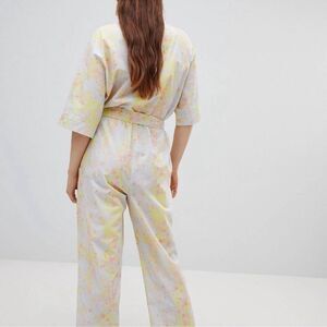 Mango Committed Collection Organic Cotton Printed Belted Jumpsuit Size 8
