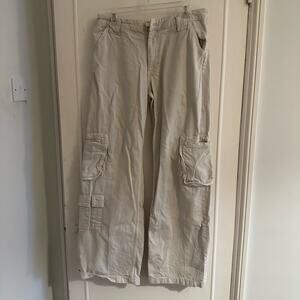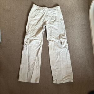 These Mango cargo pants in a cream hue offer a relaxed fit, perfect for casual outings. Crafted from a comfortable cotton blend, they provide both style and utility. The versatile color makes them an ideal choice for everyday wear.