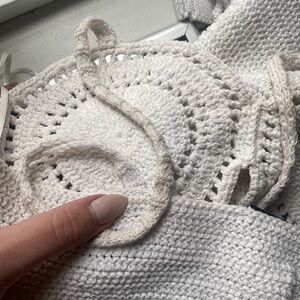 Mango Crochet Mini Dress Cutout Cotton Blend Swim Coverup Off White Size 4 S