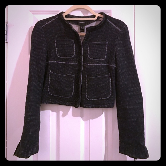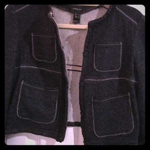 Textured black and white cropped blazer with 4 front pockets