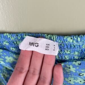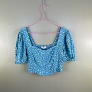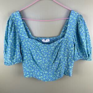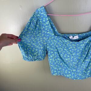 Mango Daisy Print Cropped Blouse Puff Sleeve