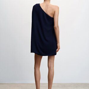Mango Dark Blue One-Shoulder Cape Dress (Size Small)