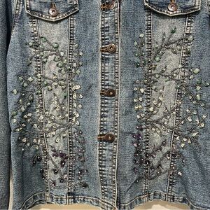 Stylish denim jacket with intricate embellishments. Perfect for casual outings.