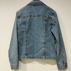 Mango Denim Embellished Jean Jacket Button Up Embroidered Size Medium Vintage
