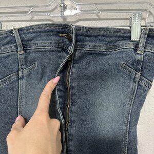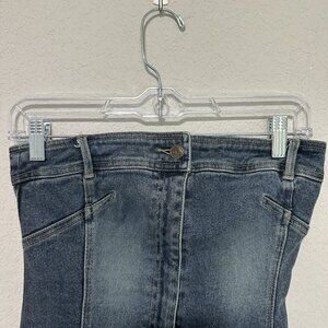 Mango Denim Strapless Mini Dress Womens Size 4 Stretch 1/4 Zip Up 2000s