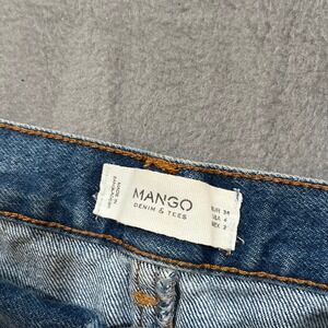 Keywords: Mango, denim skirt, mini skirt, frayed hem, blue skirt, women's skirt, casual skirt, button fly, distressed denim, summer fashion, contemporary style, festival wear, vacation outfit, Mango skirt