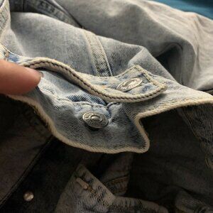 Mango MNG Womens Denim Jacket Size XXS Light Wash Distressed Pockets Button Up