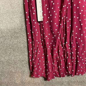 Mango Dotty-A Wrap Dress Size Small S Maroon/White Midi Polka Dot Balloon Sleeve