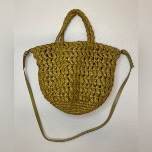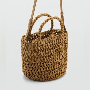 Mango Double-Handle Woven Paper Bucket Bag Brown Olive Green Natural-Fibre. Great condition.