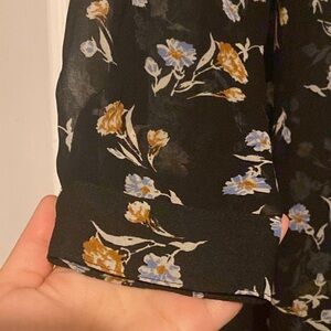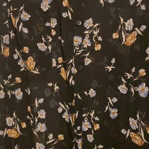 Long black and floral chiffon duster with button up and collar! Beautiful duster. In excellent condition. I wore it once but it is a little big on me.