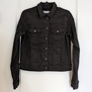 Essential cropped black denim jacket from Mango. Has black hardware and a relaxed fit.