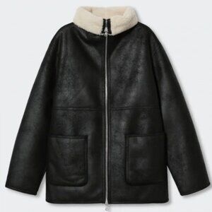 Mango Faux Leather Shearling Zip Coat Jacket