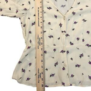 Lightweight viscose blouse. Button down. Peplum hem. Cute floral print. Shorter on the sides than in the center.