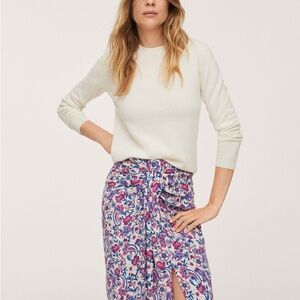 Mango Floral Paisley Midi Skirt Knotted Front sz Small