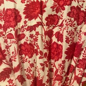 Elegant floral jumpsuit in vibrant red and white. Perfect for any occasion.