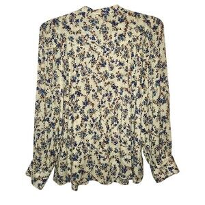 Mango Floral Ruffle Metallic Thread Button Front Coqutte Prairie Blouse Size 8