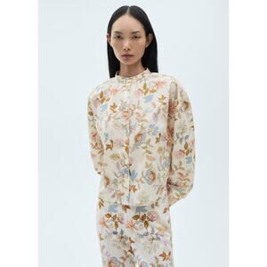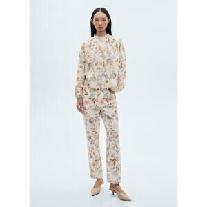 Mango Floral-Print Cotton Blouse - 2 - Ecru